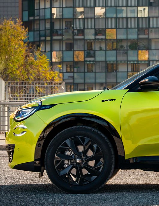 La nouvelle Fiat 600 Sport exprime à la fois puissance et élégance. Chaque détail a été conçu pour équilibrer la sportivité avec un design et une sophistication incomparables, à commencer par ses jantes en alliage de 18 pouces.