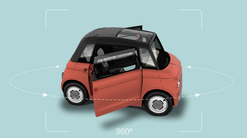 Grâce à sa stabilité et sa vitesse maximale de 45 km/h, la Topolino est sûr et facile à conduire.Sa position assise élevée et sa grande surface vitrée assurent une excellente visibilité.Il dispose de ceintures 3 points, d’un châssis tubulaire rigide et protège les occupants en cas de collision.La batterie est située sous les sièges, protégée contre les impacts et les risques d’incendie.