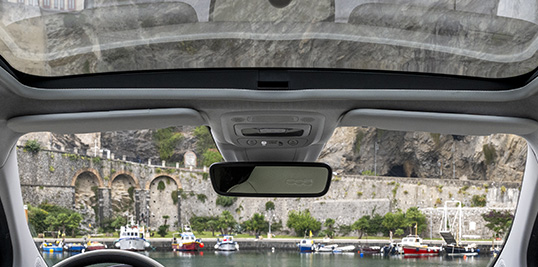 Laat de wereld binnen via het glazen dak, zodat je Fiat 500e wordt overspoeld met natuurlijk licht en een vleugje stijl voor elke rit.