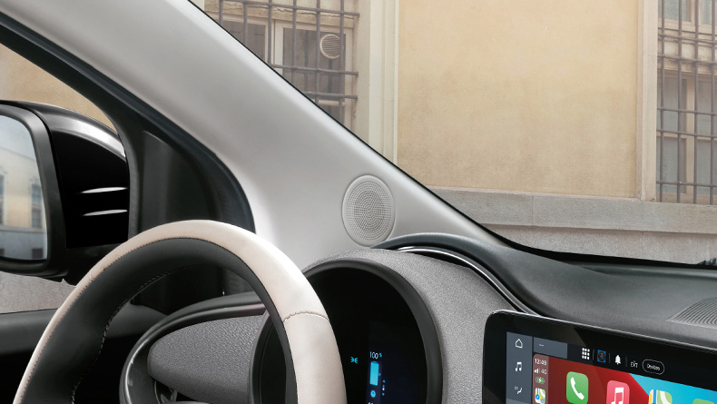 De Fiat 500e is compatibel met Apple CarPlay. Sluit je iPhone aan op het Uconnect™ 10,25-duims display en bedien Apple CarPlay draadloos met Siri-spraakbesturing of het aanraakscherm. Draadloos Apple CarPlay is de slimmere, veiligere manier om je iPhone in jouw wagen te gebruiken. Je kan routebeschrijvingen opvragen, bellen, berichten verzenden en ontvangen en naar Apple Music, audioboeken of podcasts luisteren terwijl jij je op de weg blijft concentreren.