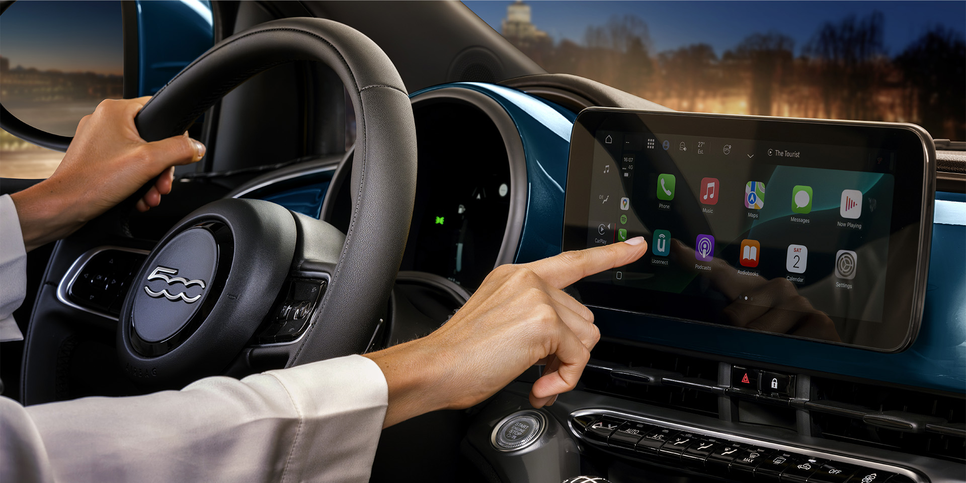 De nieuwe 500 Hybrid Torino en zijn intuïtieve technologie houden de ziel van een icoon levend en blikken met durf vooruit. Het hoge resolutie 10,25 inch touchscreen en 4 luidsprekers bieden een scherp beeld en meeslepend geluid, waardoor elke rit een moment van plezier wordt. En met draadloze Apple CarPlay en Android Auto blijft je wereld naadloos verbonden.