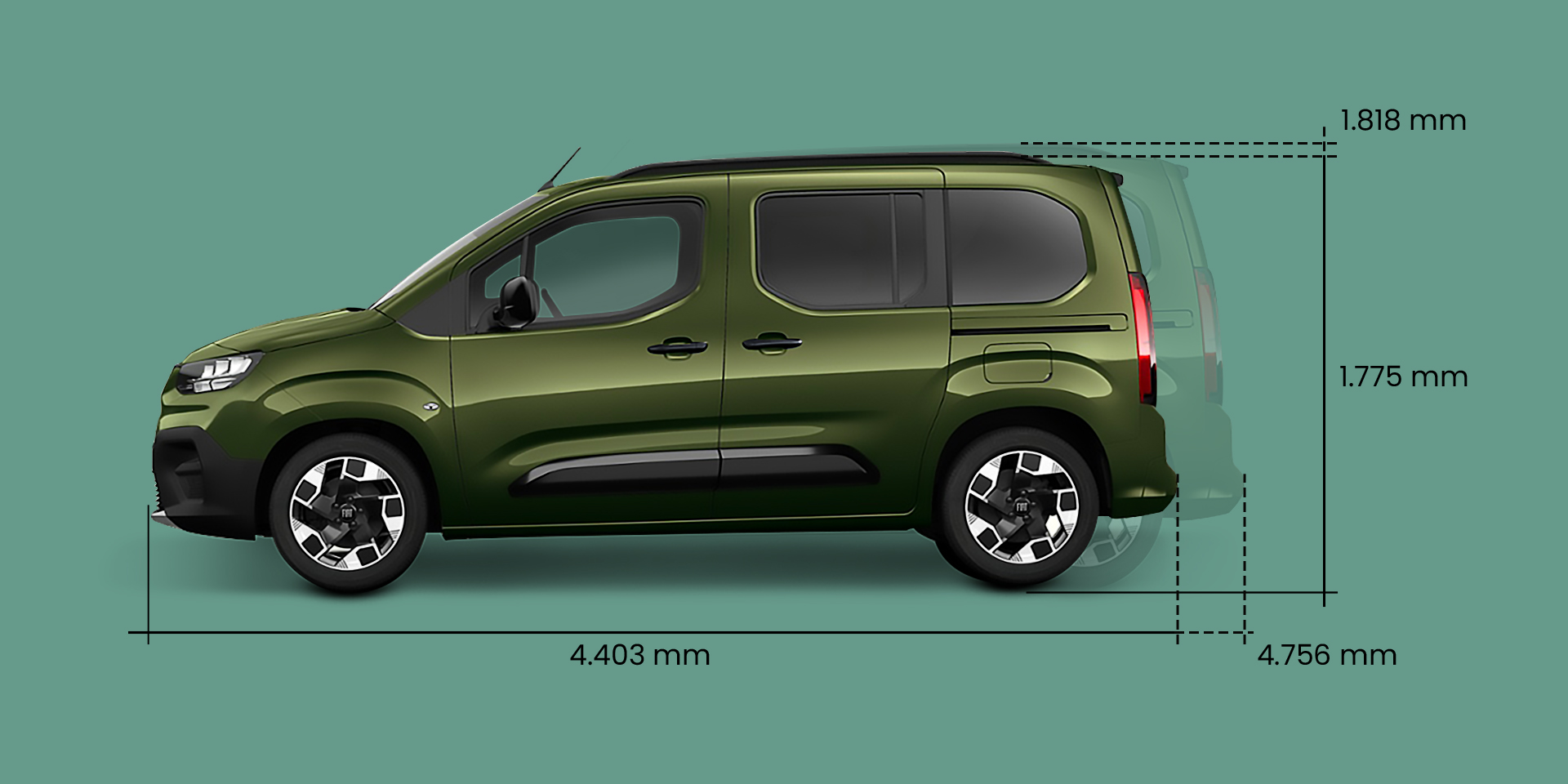 2.107 mm (met uitgeklapte achteruitkijkspiegels)