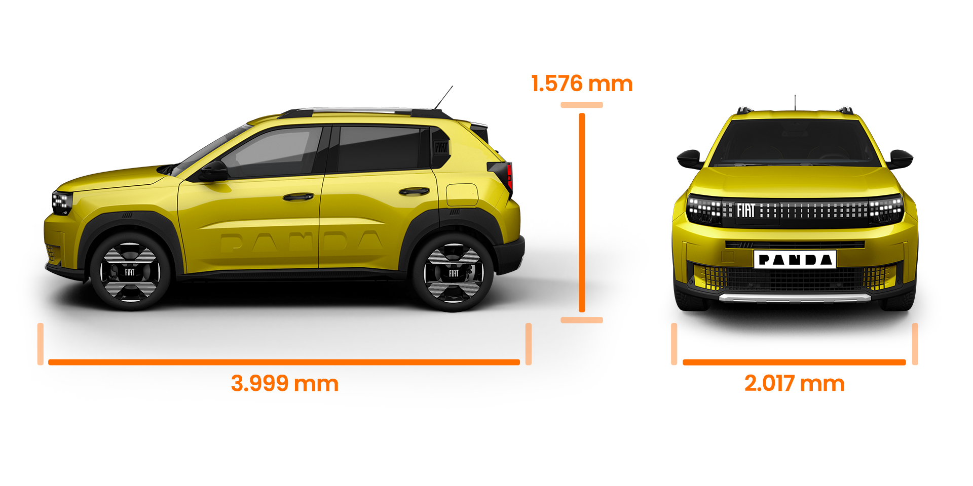 | 2017 mm (met spiegels) | 3999 mm | 1573 mm (zonder antenne) | 361L |